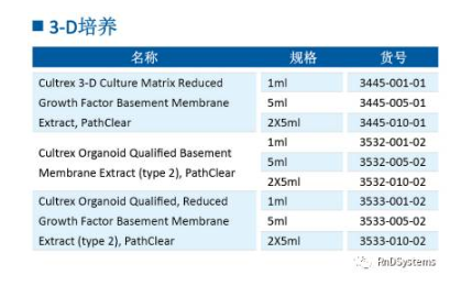 全面的產(chǎn)品線,多方驗證的優(yōu)異品質(zhì),R&D Systems的Cultrex?BME基質(zhì)膠產(chǎn)品線必能滿足您的3D細胞培養(yǎng)所需,我們將以專業(yè)的產(chǎn)品和服務(wù)助力您的2D,3D細胞培養(yǎng),組織化培養(yǎng),干細胞維持和分化等實驗。
