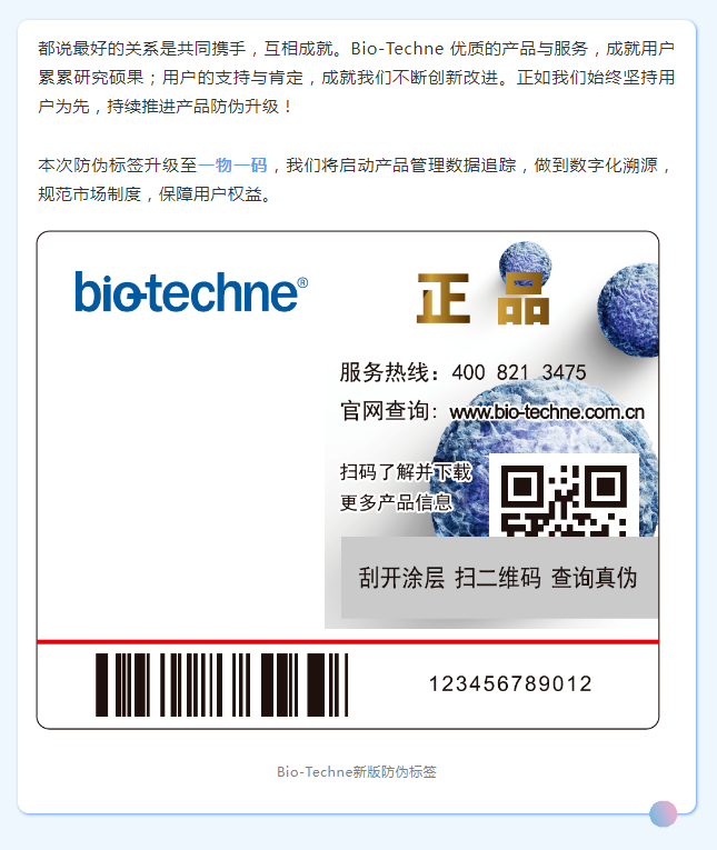 Bio-Techne 防偽標(biāo)簽全面升級(jí) | 一物一碼,全程可溯