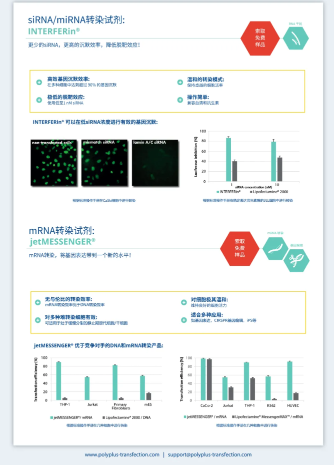 PolyPlus-transfection是一家位于法國的生物技術(shù)公司,目前已經(jīng)通過了ISO9001:2000質(zhì)量體系認證。該公司擁有20年的的轉(zhuǎn)染試劑研發(fā)經(jīng)驗,已經(jīng)開發(fā)了一系列的轉(zhuǎn)染試劑,如:基因的體內(nèi)和體外轉(zhuǎn)染試劑、寡核苷酸轉(zhuǎn)染試劑和siRNA轉(zhuǎn)染試劑等,可以根據(jù)不同的需要獲得穩(wěn)定或瞬時的轉(zhuǎn)染效果。并且提供基因和細胞治療解決方案中關(guān)鍵步驟GMP級別高質(zhì)量的轉(zhuǎn)染試劑。