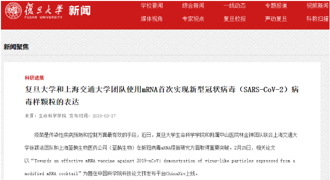 復(fù)旦交大牽頭開發(fā)新冠病毒mRNA疫苗取得實(shí)質(zhì)性進(jìn)展!